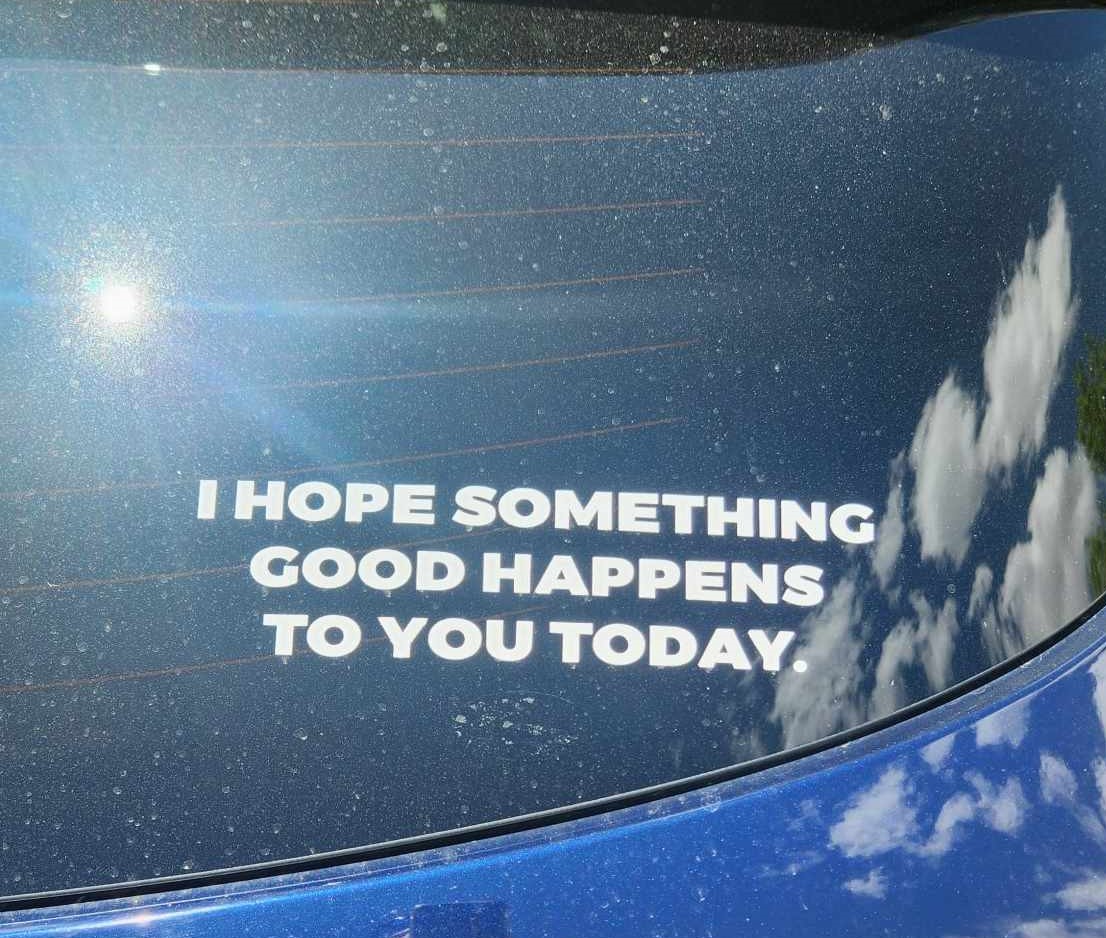 As we left there was a vehicle in the parking lot that had a sticker that said, “I Hope Something Good Happens To You Today.” We drove away and said, that’s a message I can endorse and agree.